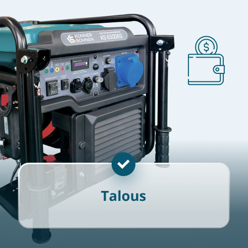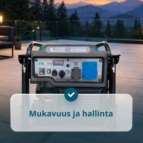 • Liikkuvuus & Käytännöllisyys — Pyörät ja kahvat mahdollistavat generaattorin helpon siirtämisen ilman fyysistä rasitusta.