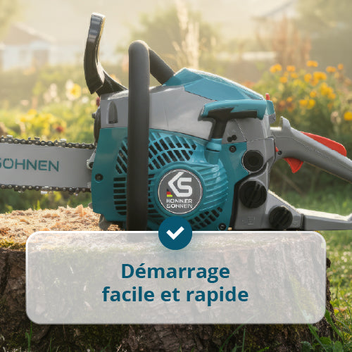 • Démarrage simple et rapide – système combinant bouton STOP automatique, pompe d’amorçage manuelle (primer) et lanceur avec ressort supplémentaire, assurant la disponibilité de la tronçonneuse à tout moment.