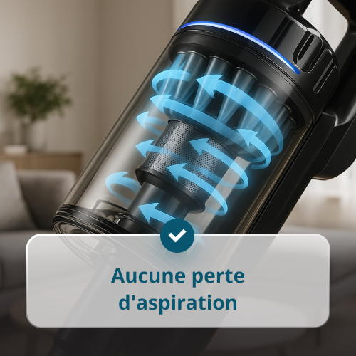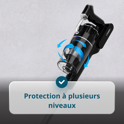 • Système multi-cyclonique – maintient la puissance d'aspiration même lorsque le réservoir est plein.