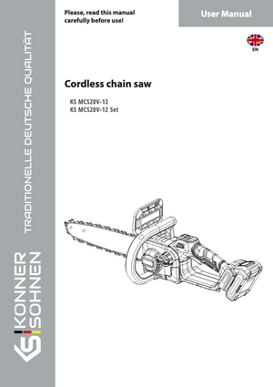| Tartalmazza | Mini láncfűrész, Csomagolás, Használati útmutató, 2×12" (30 cm) Vezetősín, 2×Lánc, 20V Akkumulátortöltő KS C45A, 20V 4Ah Lítium Akkumulátor |