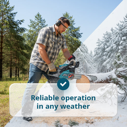 • Avvio facile e veloce – il sistema combina pulsante STOP automatico, pompa carburante manuale (primer) e starter con molla aggiuntiva, garantendo la disponibilità della motosega in qualsiasi momento.