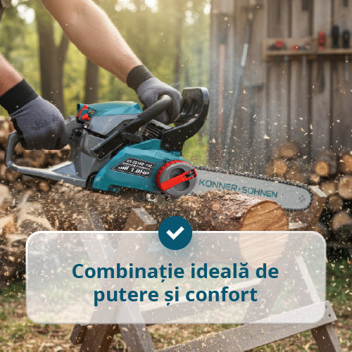 • Combinație ideală de putere și confort – 1,35 kW, șină de 35 cm și 13000 rpm permit tăierea ușoară a copacilor, pregătirea lemnului de foc și alte lucrări gospodărești.