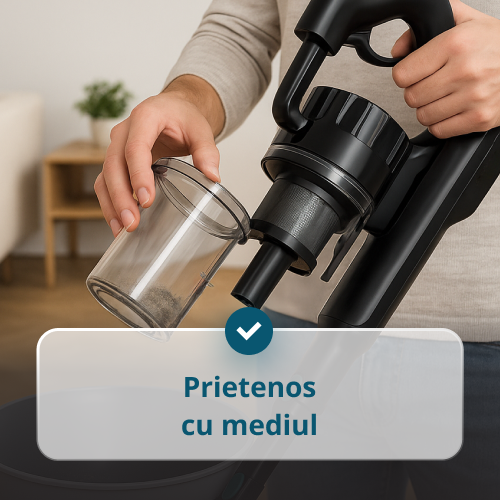 • Fără fir, elegant și ergonomic – oferă libertate maximă de mișcare în timpul curățeniei.