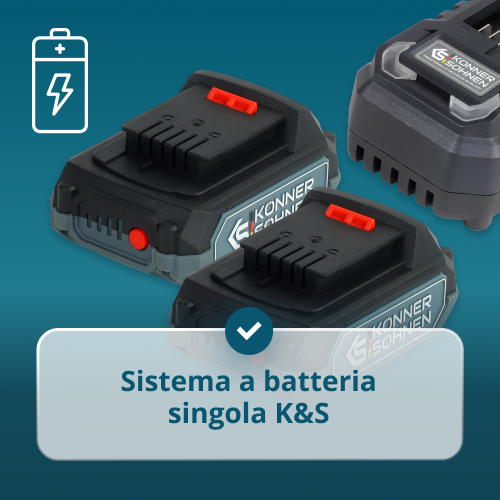 • Lavoro senza interruzioni – la presenza di due batterie da 20 V 2 Ah permette di ricaricarne una mentre si lavora con l’altra.